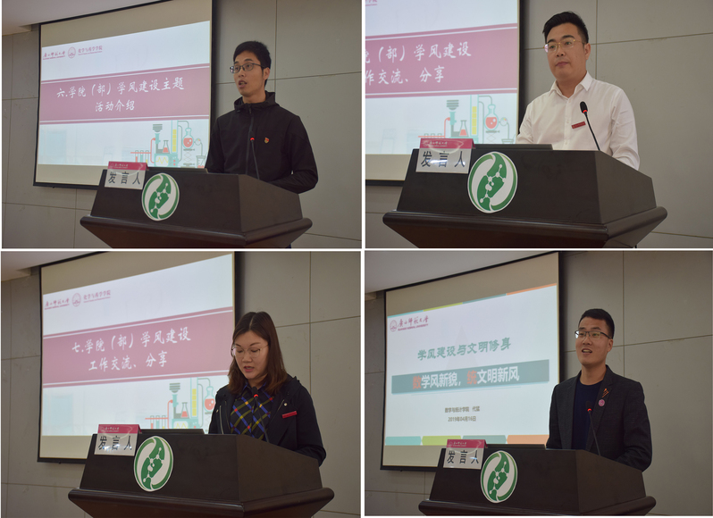 会上,学工部(处)相关负责人对《学校学风建设与文明修身调研报告》做了解读,教务处、后勤保障处/后勤服务集团负责人分别从教学管理和后勤服务保障的角度作了专题发言,谈了如何做好通过教学管理促学风建设和服务育人促学风建设。