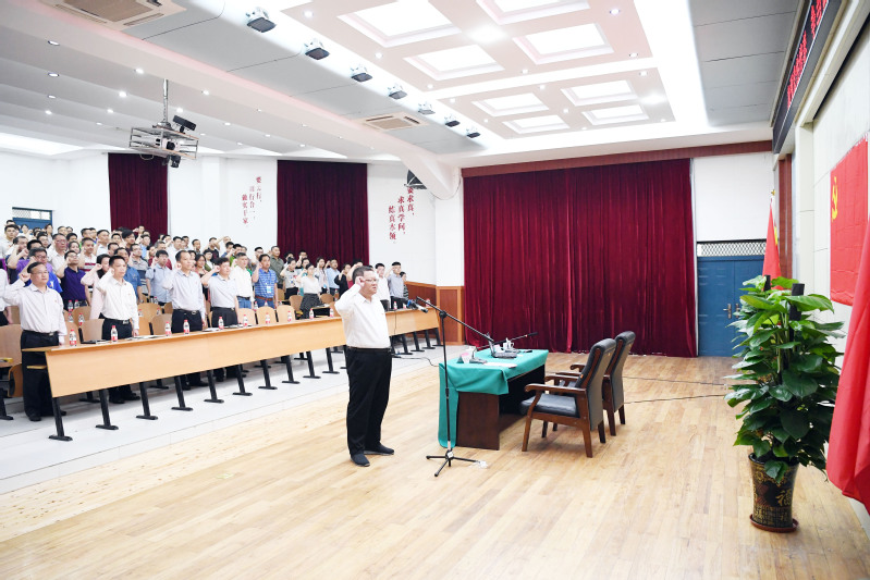 党课开始前,邓军书记带领全体机关党员重温入党誓词,通过重温入党誓词激励全体机关党员不忘初心,牢记使命,坚定信念,奋发前行。
