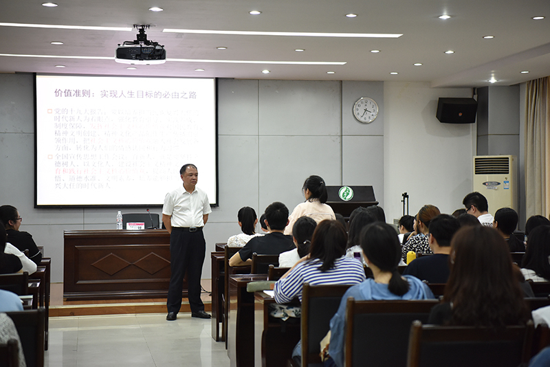赵铁副书记从社会身份、人生目标、价值准则三个方面讲述如何“争做担当民族复兴大任的时代新人”。他指出,作为新时代的大学生,在共同的社会身份下要有共同的社会目标,而个人的目标要与国家前途、民族命运紧密相连,个人理想与组织愿景相统一;要树立远大目标,引领人生方向,不辜负时光,不辜负自己。