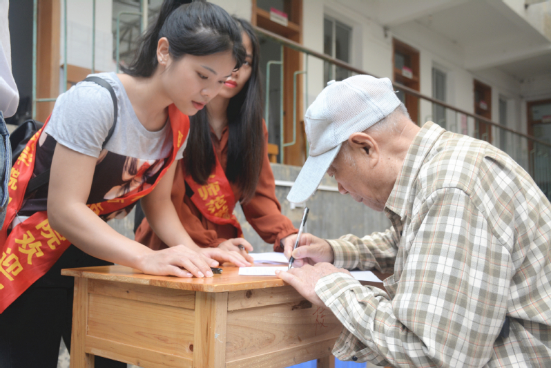 职业技术师范学院学生志愿者为行动不便的老同志提供暖心服务