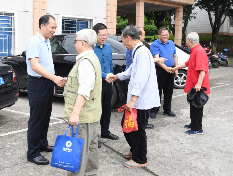 5月15日上午,校党委书记邓军、校长贺祖斌、校党委副书记旷永青在相关部门负责人陪同下,专程到育才校区校医院看望慰问参加体检的离退休教职工。