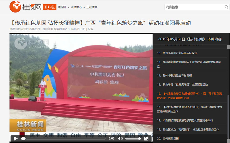 桂视网报道:【传承红色基因 弘扬长征精神】广西“青年红色筑梦之旅”活动在灌阳县启动