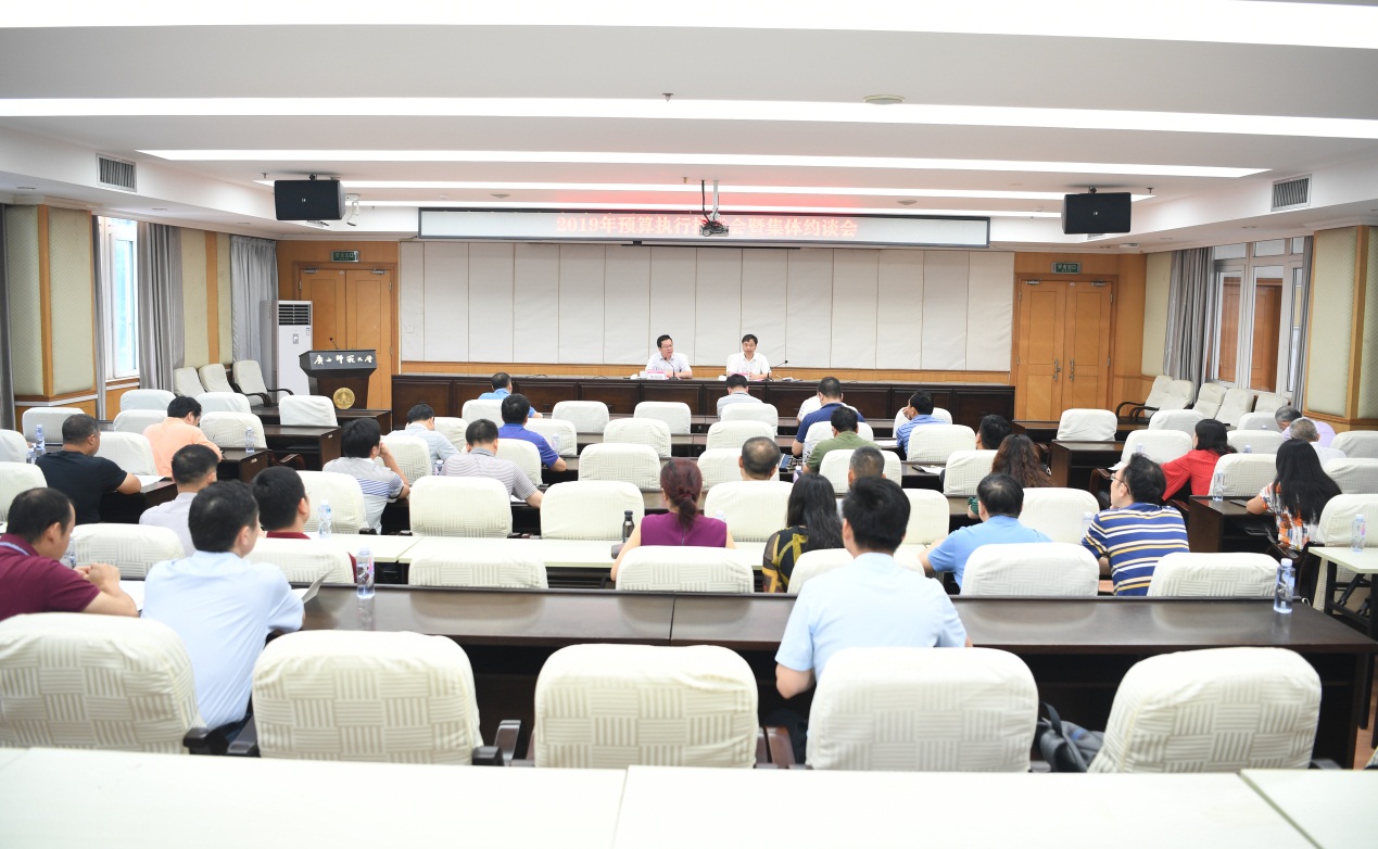 6月25日上午,我校2019年预算执行推进会暨集体约谈会在育才校区图书馆一楼报告厅召开。校长贺祖斌、副校长黄文韬出席会议,各学院(部)、各单位(含附属中学、实验幼儿园)主要负责人参加会议,会议由副校长黄文韬主持。