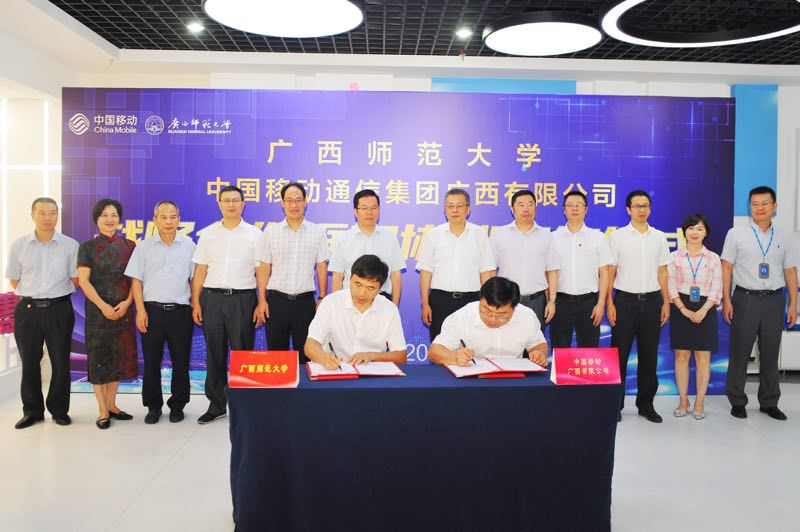 7月3日,学校与中国移动通信集团广西有限公司在南宁签订战略合作框架协议。校长贺祖斌,副校长黄文韬,校办/发规办、科技处、网信中心、教师教育学院、计信学院负责人参加了协议签约仪式。