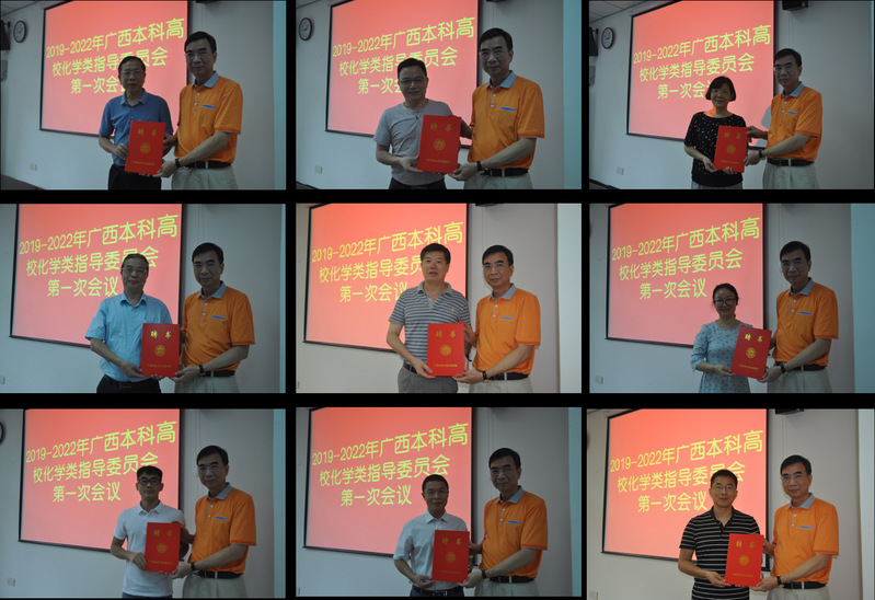大会由委员会秘书长主持,主任委员梁宏教授宣读了2019-2022年广西高校化学类教学指导委员会名单,并为与会委员颁发证书。会上委员们就起草的《2019-2022年广西本科高校化学类教学指导委员会工作细则》、《2019年度广西本科高校化学类教学指导委员会工作计划》、《2019-2022年广西本科高校化学类教学指导委员会工作规划》进行了仔细研读和热烈的讨论。