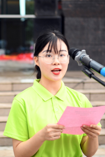 仪式上,职业技术师范学院/健康管理学院2016级会计学专业的卢思健同学表暑期社会实践团队发言,表示要用实际行动诠释“奋斗是青春最亮丽的底色”誓言。