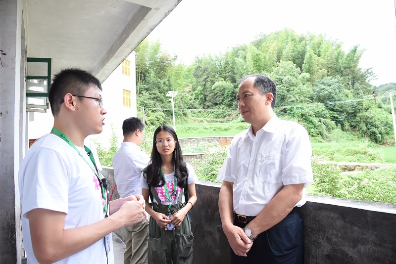 7月15日下午,校党委副书记旷永青带领学工部(处)、校团委、国交处负责人冒雨深入资源县资源镇金山村看望慰问暑期社会实践的指导教师和志愿者们。