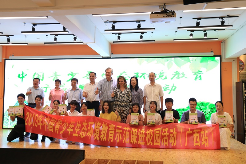 9月3日,由生态环境部宣传教育中心与广西壮族自治区环境保护宣传教育中心联合主办的2019年中国青少年生态环境教育示范课进校园活动在我校雁山校区大学生创业园举行。世界知名生态活动家、“蓝色经济”模式创始人冈特·鲍利、联合国零排放研究创新基金会法律总监、插画师凯瑟琳娜·巴赫、生态环境部宣传教育中心副主任何家振、生态环境部宣传教育中心基地管理室艺术中心主任李原原、自治区环境保护宣传教育中心主任梁雅丽、我校党委副书记旷永青、桂林市生态环境局副局长刘学振以及安徽省、海南省、内蒙古自治区观摩团、我校师生300余人参加本次活动。