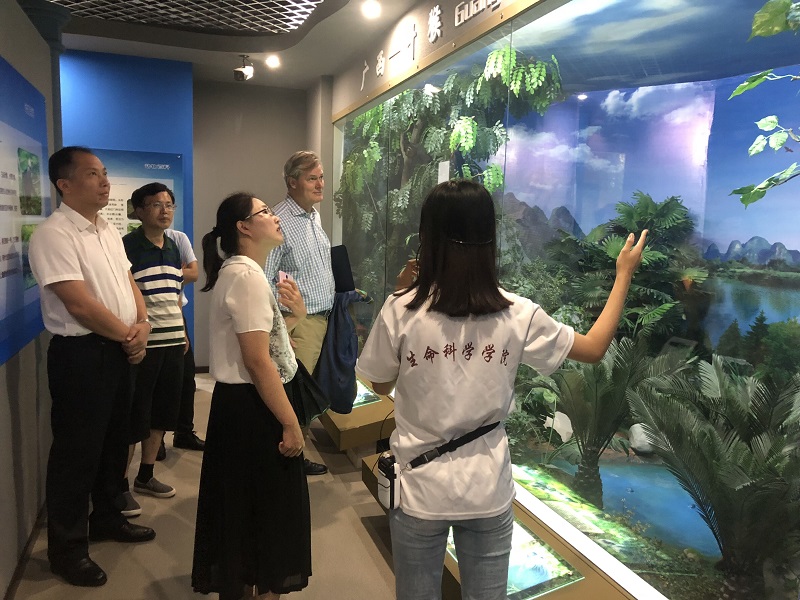活动中,我校环境与资源学院师范生代表进行了主题为“广西北部湾海洋生态环境科普”的生态教育课说课,以潮间带红树林底栖生物为例科普生态环保意识。冈特先生一行还观看了我校美术学专业学生的山水画展及我校生物多样性博物馆,不时与学生互动,并向我校学生代表赠送了《冈特生态童书》系列丛书。