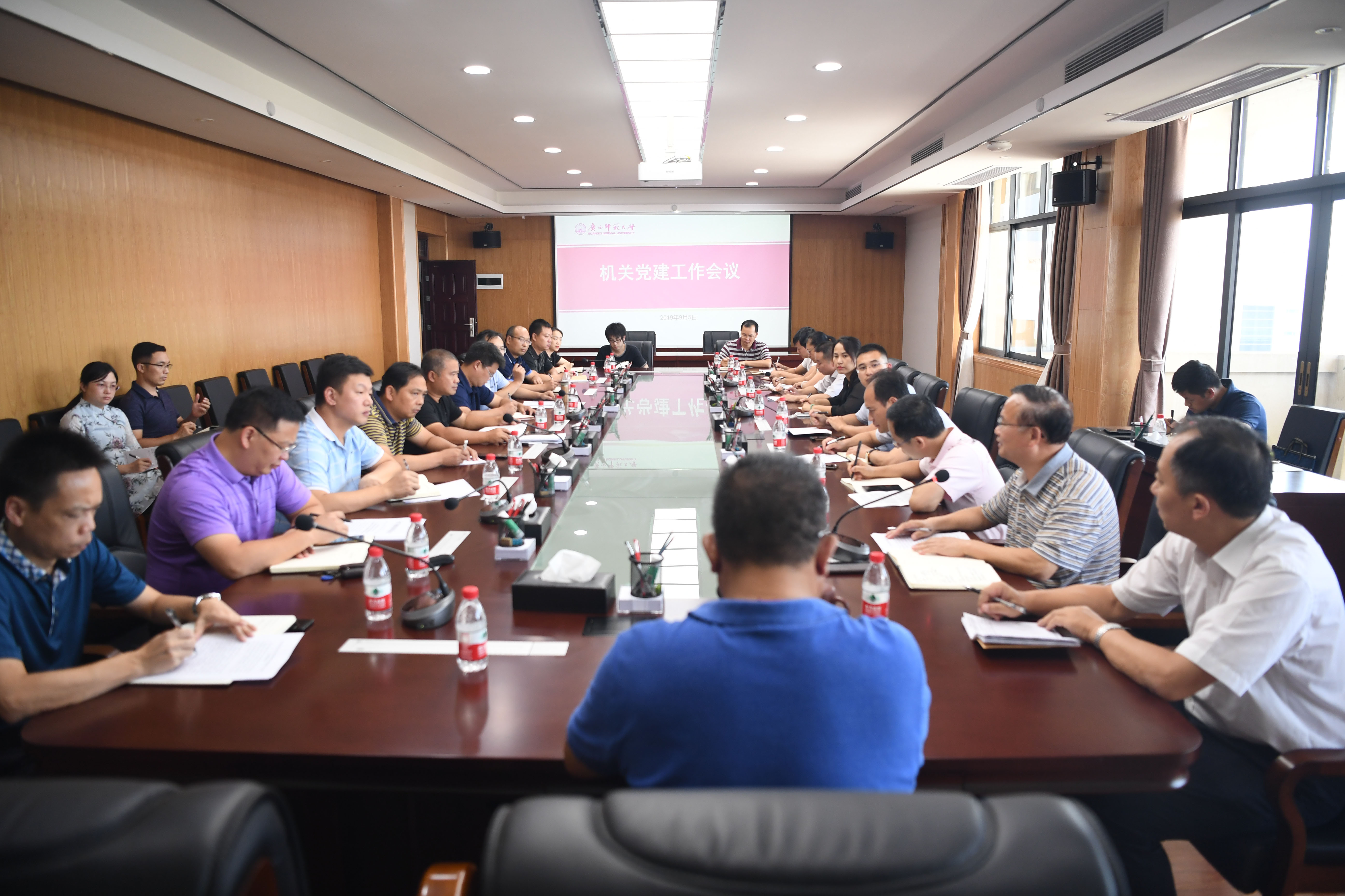 为了深入学习贯彻中央和国家机关党的建设工作会议、自治区全区机关党的建设工作会议精神,9月5日下午,校党委在雁山校区起文楼第二会议室召开学校机关党建工作座谈会。学校党委书记邓军主持座谈会并讲话。校党委副书记旷永青,校党委常委林国庆、黄海波,机关党委两委委员和机关各党支部书记参加了会议。