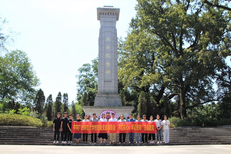 9月22日上午,校团委党支部在育才校区青马基地举行“不忘初心、牢记使命”主题教育动员部署工作会,到桂林市七星公园烈士纪念碑开展革命传统教育,正式启动支部主题教育。学校机关党委相关负责人、支部全体党员干部以及第七届研究生支教团候选成员参加相关活动。