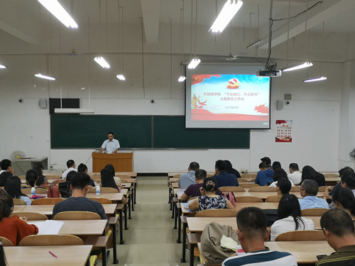 近日,外国语学院党委召开“不忘初心、牢记使命”主题教育动员大会和工作布置会,会议要求全体领导干部和成员要深刻认识开展主题教育的重大意义,自觉加强理论学习,切实把思想和行动统一到党中央、自治区党委和学校党委的决策部署上来。9月19日,学院召开了教工党员大会进行了动员,并于9月23日在行政南楼231会议室举行了“不忘初心、牢记使命”主题教育具体工作布置会。学校主题教育领导小组督导组成员谢坤同志莅临指导,学院党员领导班子成员、学院纪委委员及各党支部委员参加本次会议。