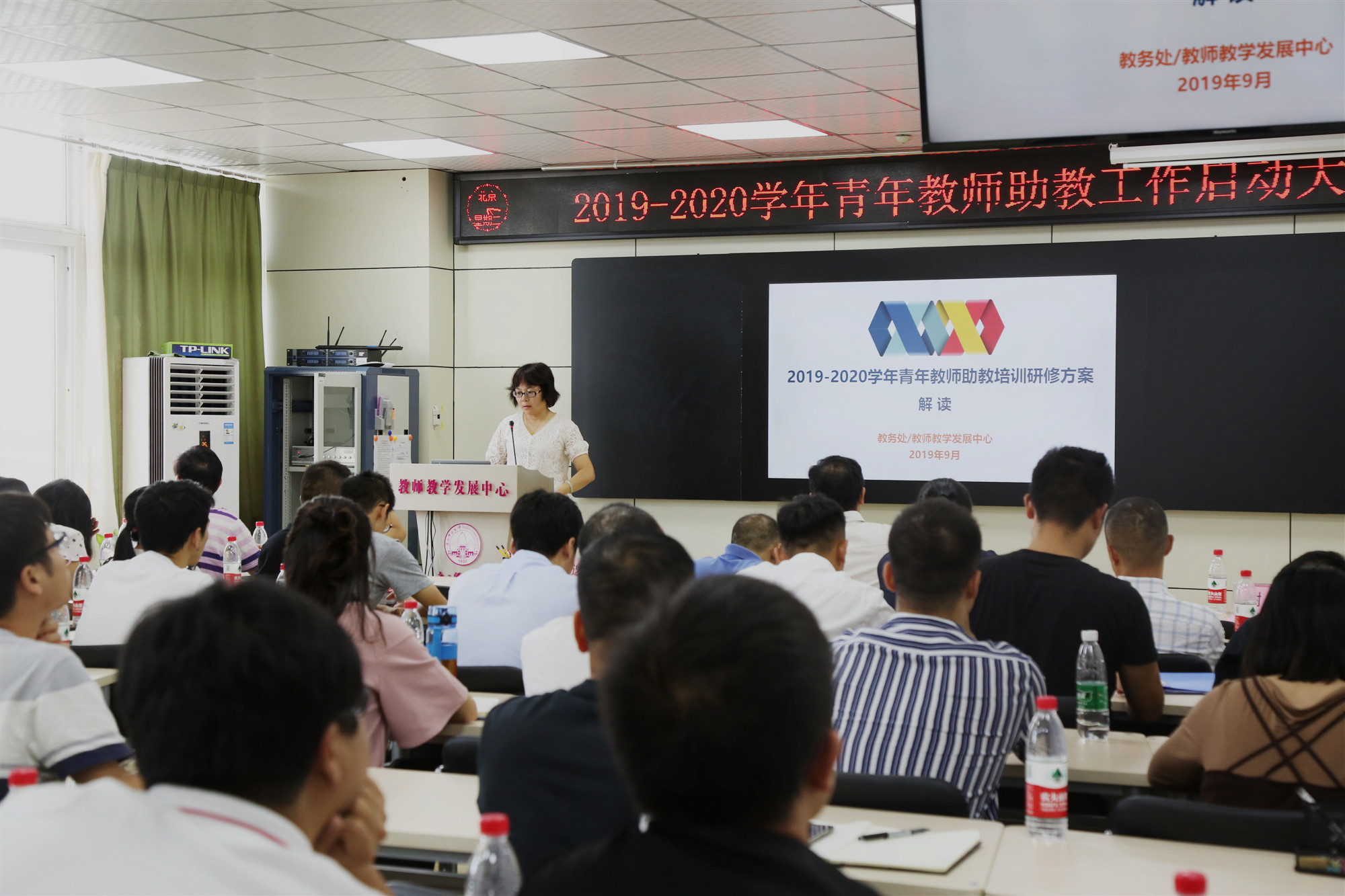 启动仪式后,由教务处/教师教学发展中心常务副主任解读《青年教师助教制度实施办法》,他主要从培养对象、培养周期、助教和指导老师的工作职责、培训内容、培养过程、培养要求、本科课堂教学准入资格考核、助教工作考核等进行全方位的解读。随后,教务处/教师教学发展中心副主任对《青年教师培训研修方案及学习管理办法》进行了讲解,她从总体目标、研修时间、研修内容、设计原则、研修方式本学年拟开展的各类教学培训活动等,并结合往届情况对青年教师需要填写的助教手册进行了详细的说明。她还强调了培训学习管理办法和学习纪律要求。