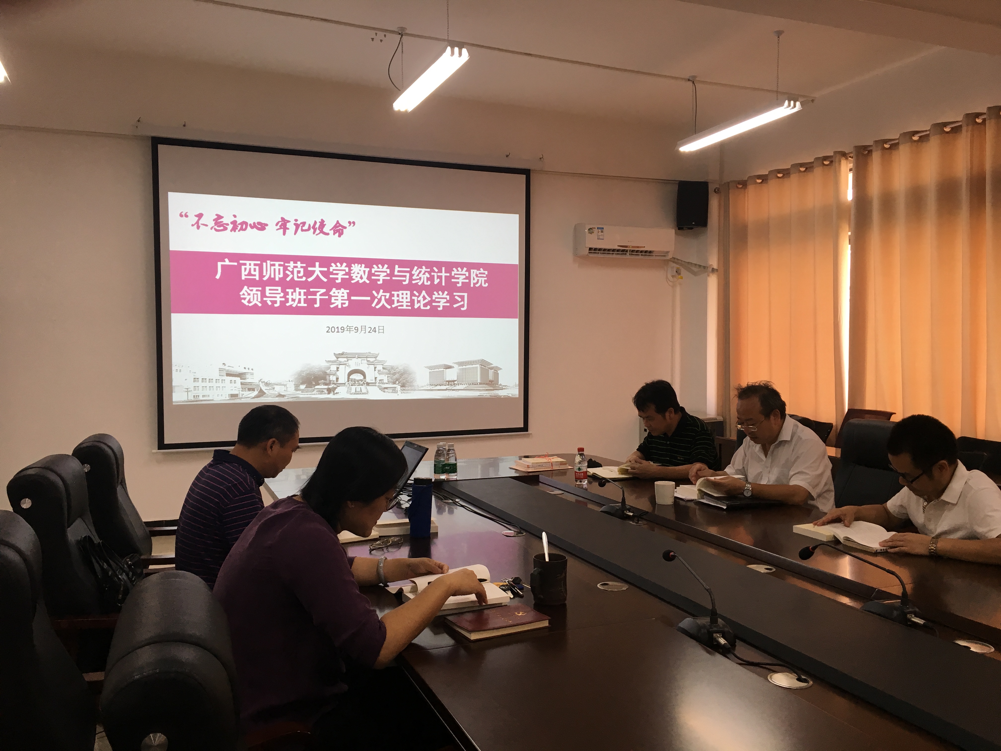 9月24日下午,数学与统计学院领导班子在雁山校区行南608会议室召开“不忘初心、牢记使命”主题教育第一次专题理论学习会。学院全体党政领导班子参加此次会议。