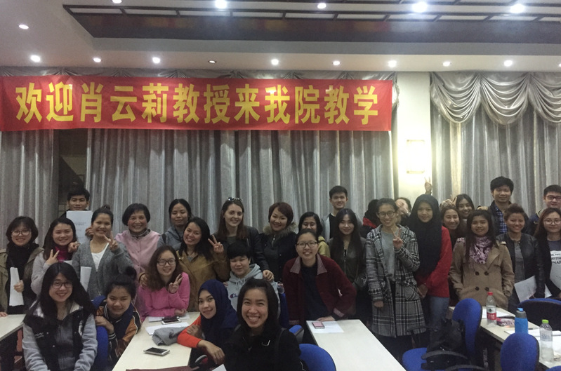 2017年3月支部会员肖云莉教授给广西师范大学留学生介绍广西民歌