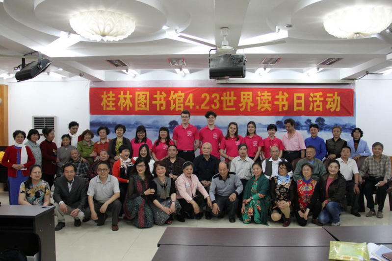 2018年4月23日支部会员带领广西师范大学留学生参加桂林图书馆举办的世界读书日活动,朗诵中国诗,体验中国情。