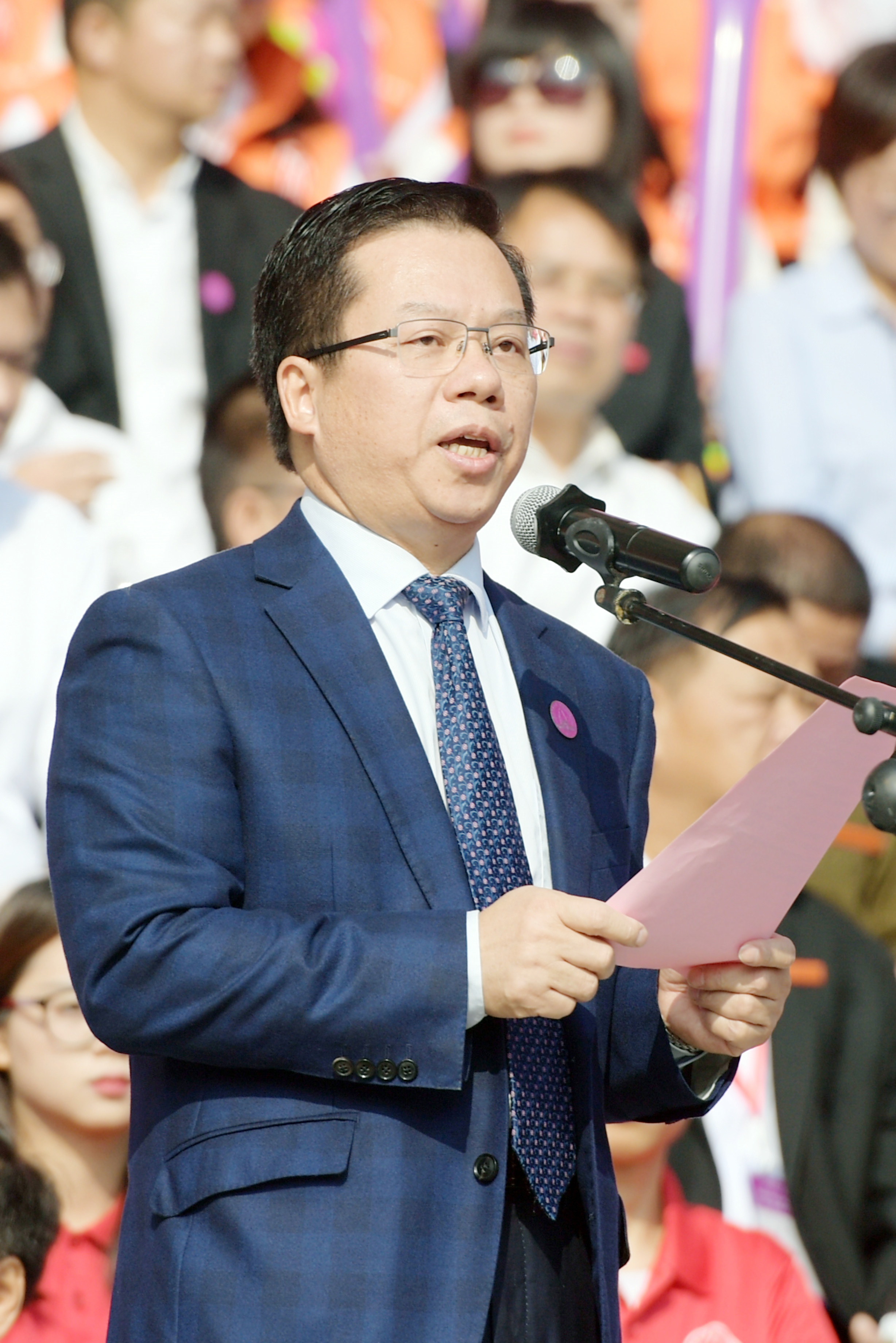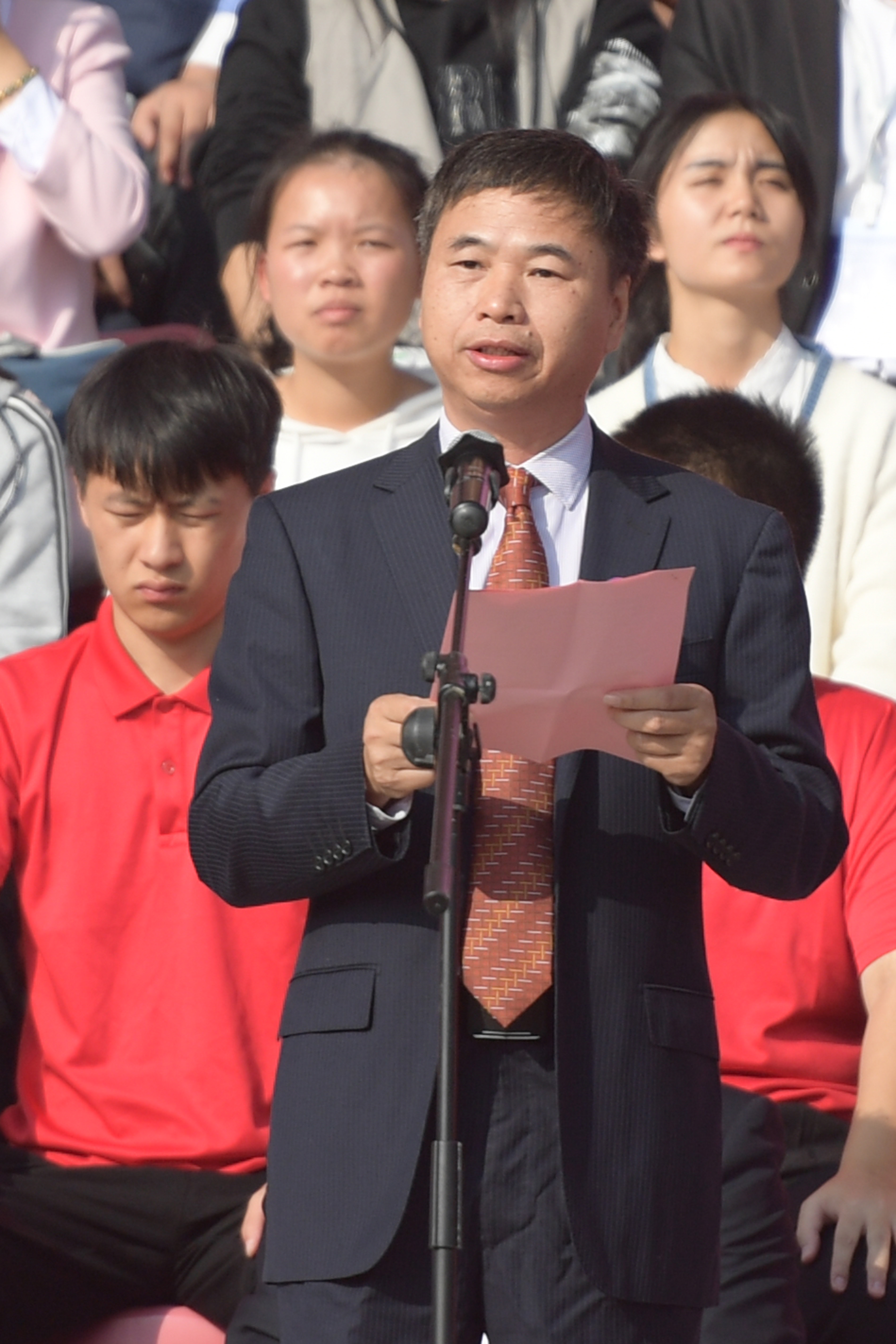 校党委副书记、校长贺祖斌致辞。贺祖斌在致辞中回顾了我校第十一次党代会以来,体育事业蓬勃发展的良好态势和全校师生积极参加体育运动、锻炼健康体魄的良好风气。