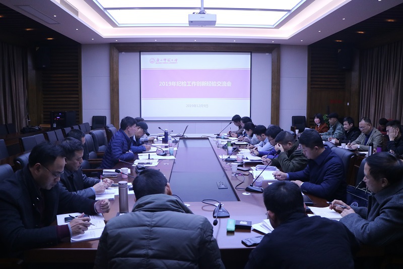 12月9日下午,我校在雁山校区第四会议室召开2019年纪检工作创新经验交流会,各二级单位纪委书记、党总支纪检委员、纪委办、监察处全体干部参加了会议。校纪委书记莫坷同志出席会议并作讲话。