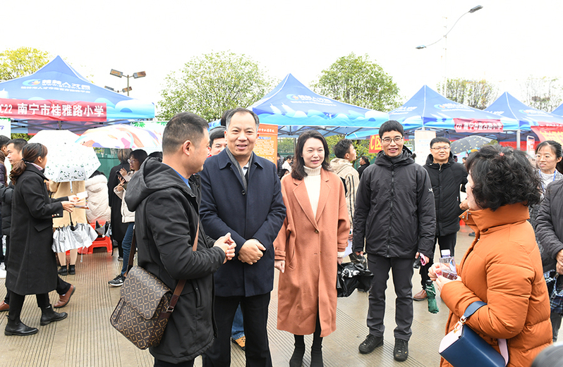 来自广东、湖南、贵州、云南、浙江、上海、福建、海南、广西等地400多家用人单位入校揽才,提供各类就业岗位近1.6万个,涵盖了教育、金融、文化等多个领域,其中广西区内多个地市教育局、人社局、组织部等部门组团企事业单位参会,吸引校内外高校毕业生8000余人到场应聘,现场气氛热烈,现场签约人数超过200人,近2000人初步与用人单位达成意向。