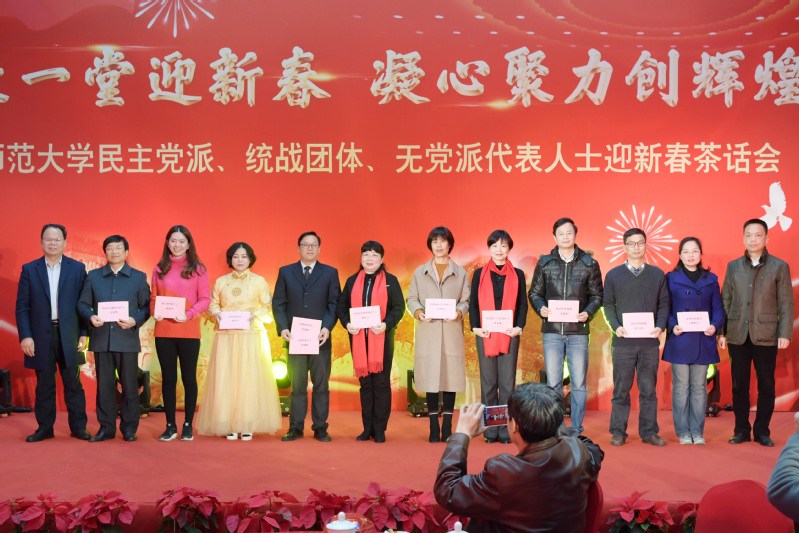1月3日,我校举行民主党派、统战团体、无党派代表人士校情通报会暨迎新春茶话会,全体在家校领导、校党委常委和我校民主党派、统战团体、无党派代表人士共同出席茶话会。