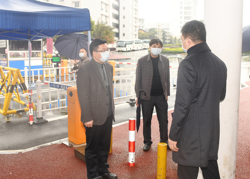 3月7日上午,校长、学校疫情防控工作领导小组组长贺祖斌,副校长、校疫情防控工作领导小组副组长黄文韬深入育才校区西大门、二附办学场地、防控物资储备室、学生公寓、隔离区、校医院等场所进行实地查看,检查开学前准备工作,并提出进一步完善的意见和建议。