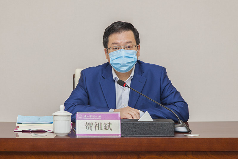 校长、学报编委会主任贺祖斌主持会议并讲话。贺祖斌指出,在学报办刊质量提升过程中,编委会是学报治理的主导性力量,是学报发展的方向引导体系、质量监督保证、沟通协调平台。
