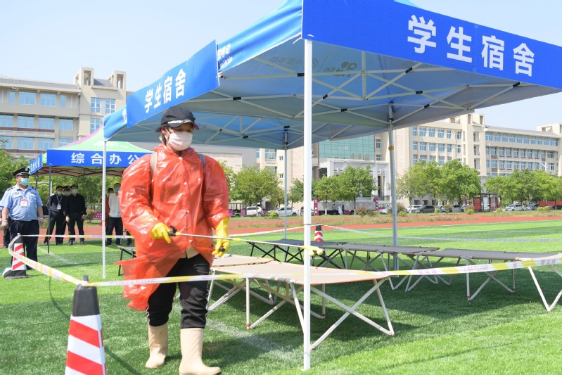 校防控办、教师工作部/人事处、武装部/保卫处、教务处/教师发展中心、后勤保障处/后勤服务集团、校医院等职能部门相关负责人、学工部(处)、校团委、研究生工作部/研究生院全体干部、各学院(部)分管学生工作的党委副书记以及全体专职辅导员参加了演练观摩。