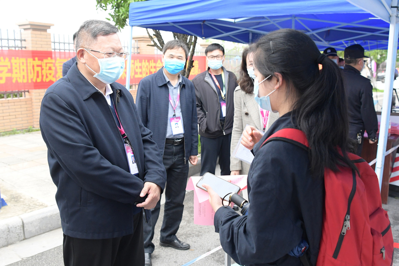 4月21日是我校毕业年级学生分批开学的第一天,我校毕业年级学生陆续返校报到。学校领导高度重视学生返校工作,校党委书记、校疫情防控领导小组组长邓军与校长、学校疫情防控领导小组组长、指挥部指挥长贺祖斌带队深入学校大门、学生宿舍与食堂等重点区域,实地检查毕业年级学生返校各项工作。