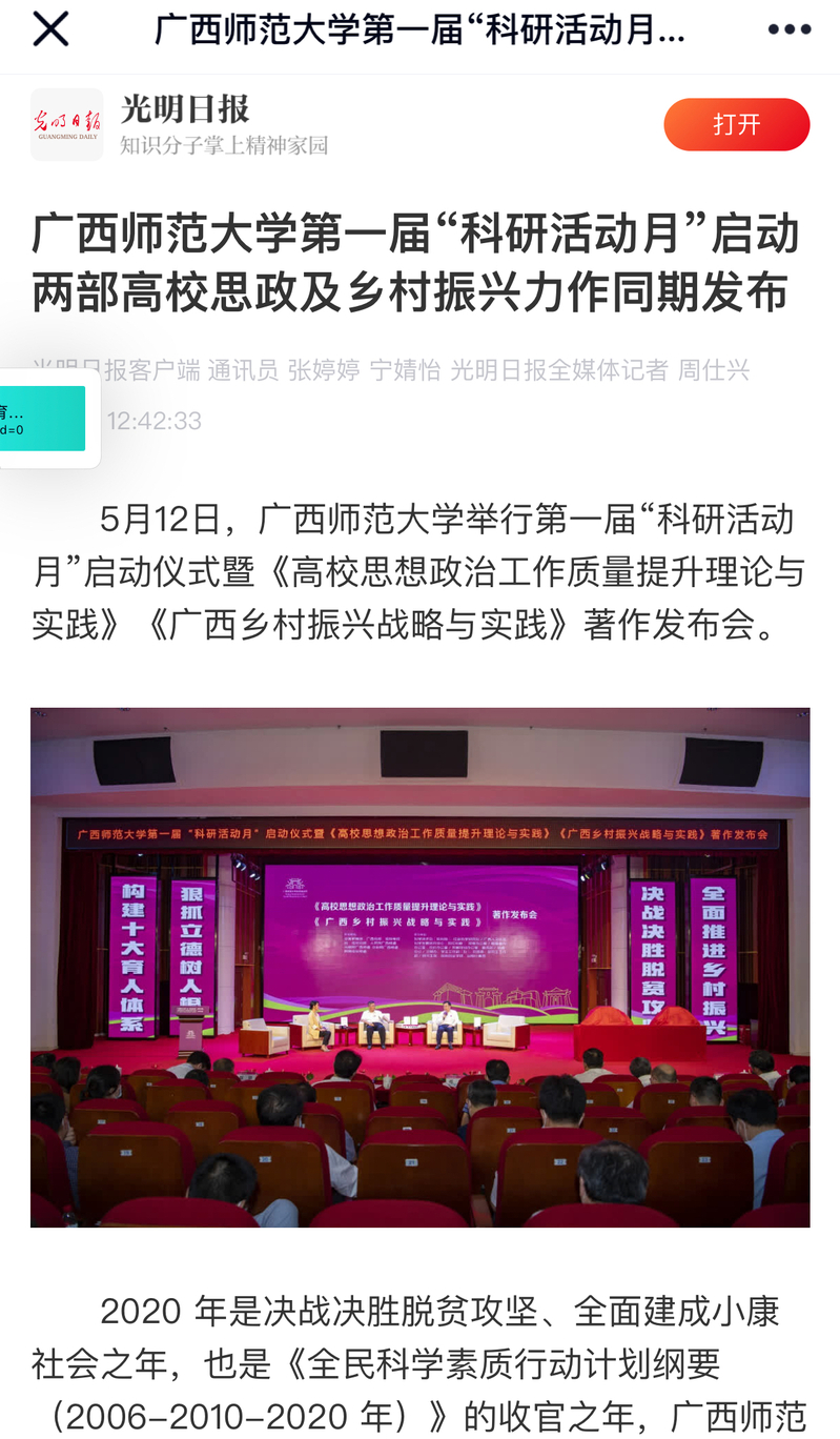 广西师范大学第一届“科研活动月”启动 两部高校思政及乡村振兴力作同期发布