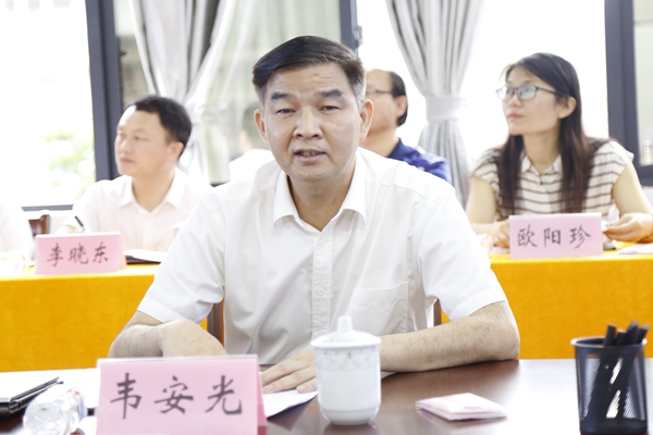 河池学院校长苗剑主持座谈会并在致词中表示,河池学院和广西师大有着浓浓的亲情和友谊。多年来,广西师大以丰厚的办学优势大力支持河池学院在人才引进、教育教学、科学研究、学科建设等方面的发展,河池学院获益良多。期盼通过此次交流,两校今后的合作范围更广、程度更深,河池学院发展的更快、更好。河池学院党委书记韦安光对我校一行的到来表示热烈欢迎,并对我校长期以来关心和支持河池学院的发展致以衷心感谢。他介绍了河池学院近年来在办学定位凝练、服务地方发展、特色办学、人才队伍建设等方面的办学情况和发展成就,以及学校未来的发展目标规划,同时也分析了当前制约学校发展的瓶颈和问题,期待广西师大继续在硕士学位点建设、学科和平台建设、师资队伍建设、精品课程开发等方面给予河池学院更大的帮助,双方共同打造广西高校对口支援工作典范,使河池学院更加凝心聚力扎根地方,为提升人才培养质量、服务地方教育和经济社会发展作出更大的贡献。