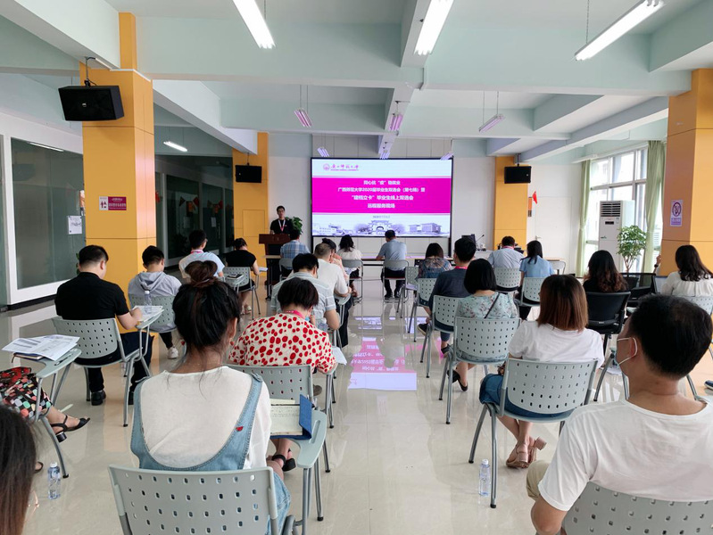 为贯彻落实上级相关会议及文件精神,满足毕业生和用人单位的需求,切实做好我校2020届“建档立卡”毕业生的精准帮扶工作,7月1日至2日,我校举办广西师范大学2020届毕业生双选会(第七场)暨“建档立卡”毕业生线上双选会。7月1日上午,我校在雁山就业指导中心三楼大厅召开2020届毕业生双选会(第七场)暨“建档立卡”毕业生线上双选会现场推荐会。校党委副书记旷永青出席会议,学生工作部(处)、研究生工作部相关负责人,全体2020届毕业班专兼职辅导员以及就业指导中心全体教职工参加推荐会。会议由大学生就业指导中心相关负责人主持。