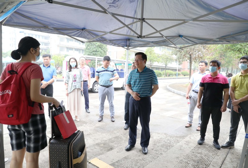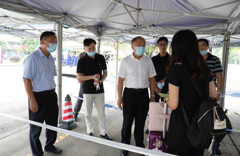 校党委书记邓军率队在王城校区实地检查学生返校工作。邓军一行深入迎新接待站、学生宿舍、食堂,详细了解新学期学生返校各项准备工作,并与返校学生亲切交流。在检查结束后,邓军指出,各职能部门要充分考虑三校区办学的实际情况,统筹兼顾,在各个校区做好管理服务;各职能部门要从解决师生的实际问题出发,在做好疫情防控的同时,高度重视和学生学习生活密切相关的食品卫生、安全保卫等工作,为同学们创造良好的学习生活条件。
