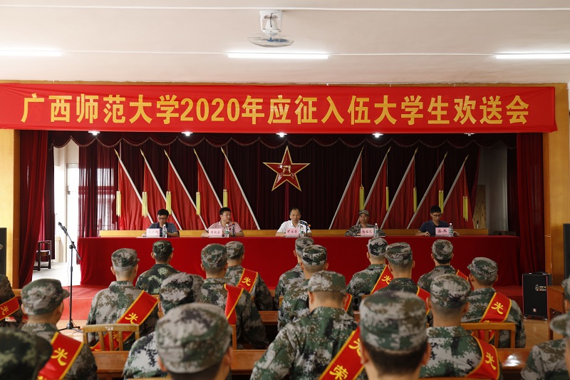 9月8日上午,根据疫情防控的要求,我校在桂林预备役通信团和桂林警备区集训地分别为2020年光荣入伍的37名男大学生和8名女大学生举行了特别的欢送会。校党委副书记旷永青带领武装部、学工部等相关部门负责人为即将走进军营的45名优秀学子壮行,桂林警备区副司令员彭云等部队领导参加了欢送会。会议由我校武装部负责人主持。