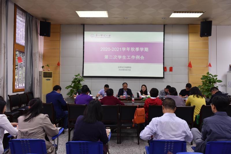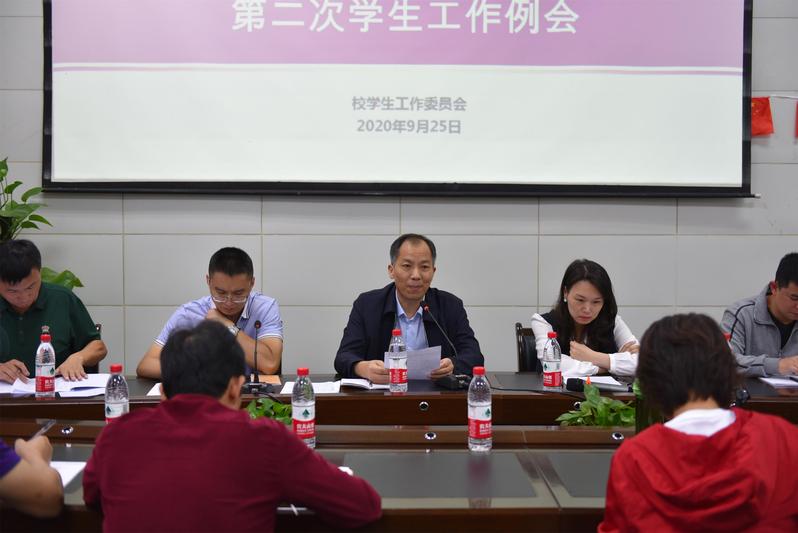 9月25日下午,我校在育才校区就业指导中心一楼大厅召开2020-2021学年秋季学期第二次学生工作例会。校党委副书记旷永青出席并主持会议。