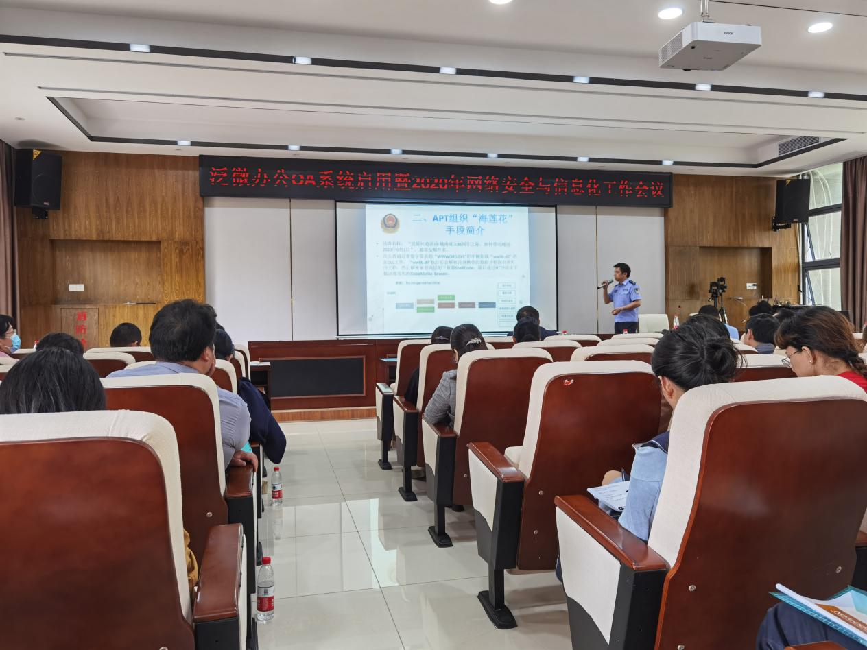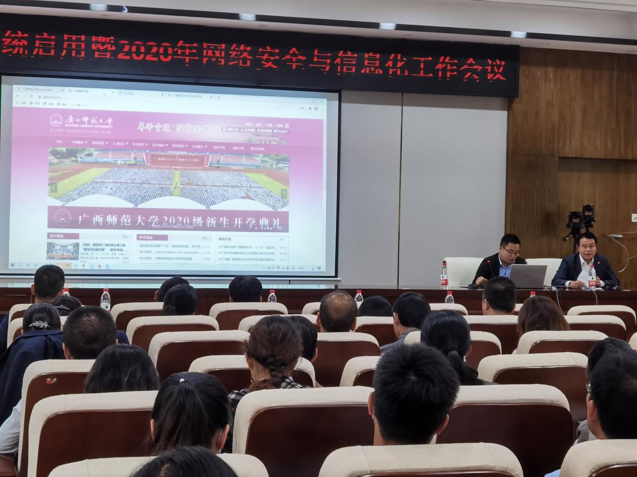 9月30日上午,泛微办公OA系统启用暨2020年网络安全与信息化工作会议在雁山校区第五会议室召开。校党委常委、副校长黄文韬出席会议并讲话,学校各学院(部)、各单位分管领导及办公室主任/秘书、上海泛微网络科技股份有限公司技术人员及桂林市公安局网络安全保卫支队技术专家参加会议。会议由网络信息中心主要负责人主持。