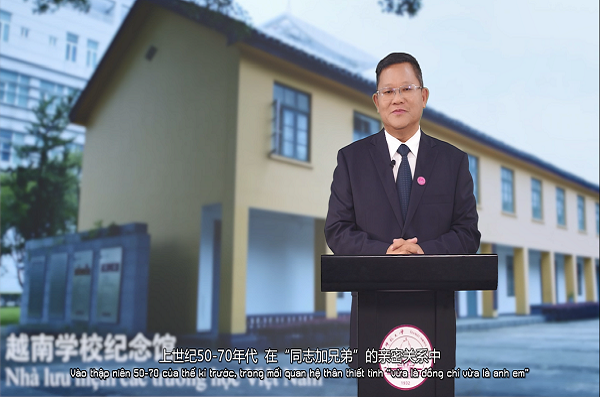 越中友好协会副主席阮荣光在庆典致辞中指出在抗美救国战争中, 越南人民受到中国(共产)党、政府和人民的无比宝贵的精神的支持和物质的援助,是越南人民永远不忘记的。越南学校纪念馆的建馆具有重大的意义。这是保留越中两国人民一个时代的记忆,承载越中两国人民感情的场所。10年来,越南学校纪念馆发挥了它的重要作用。