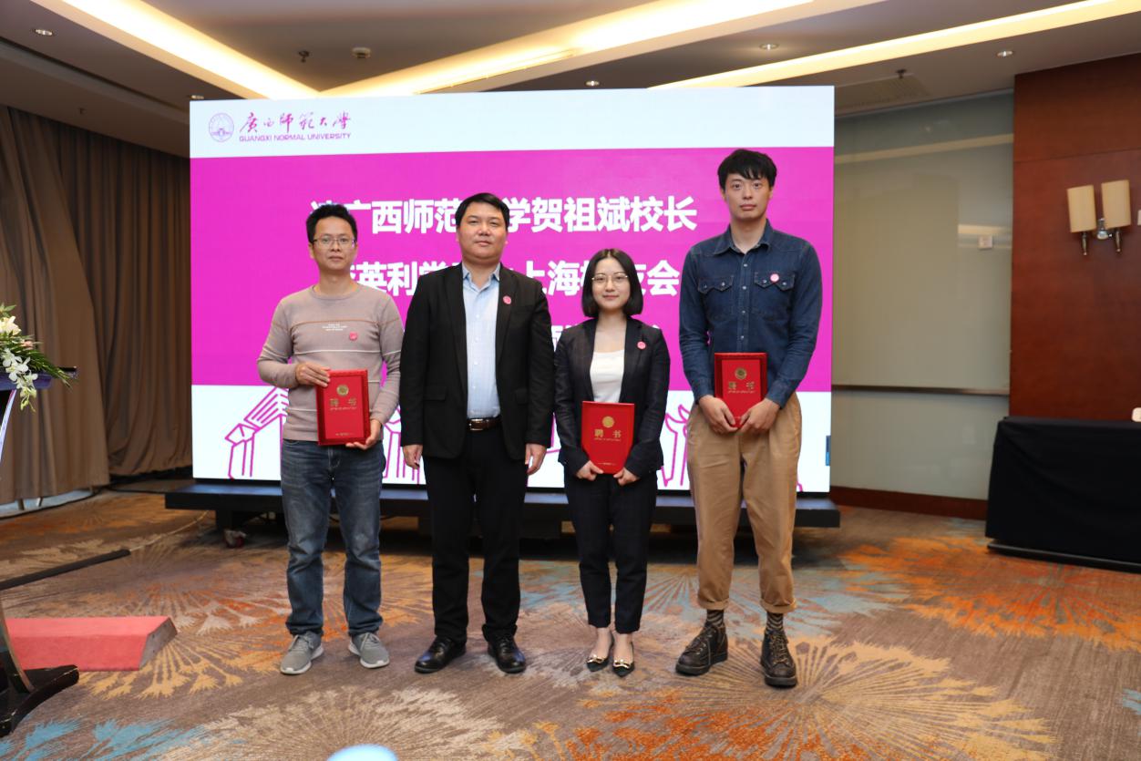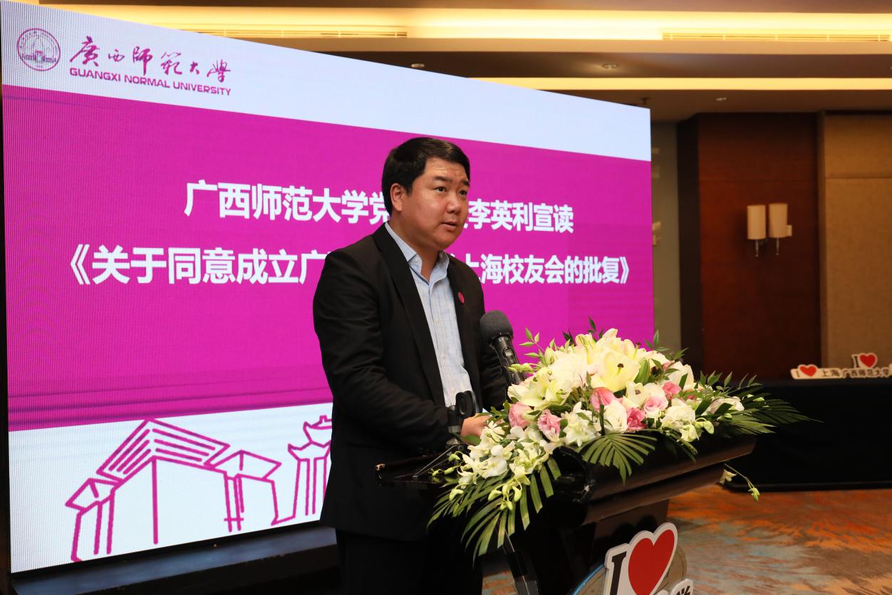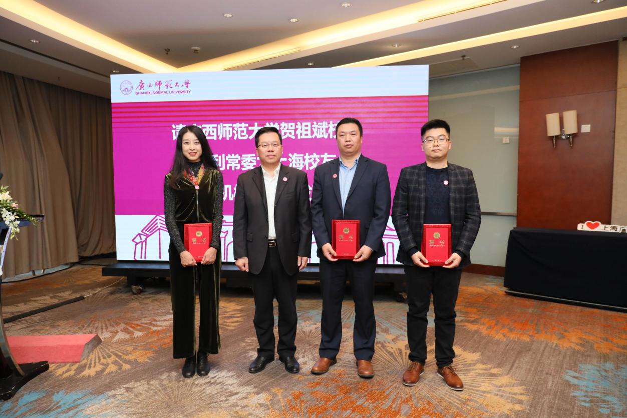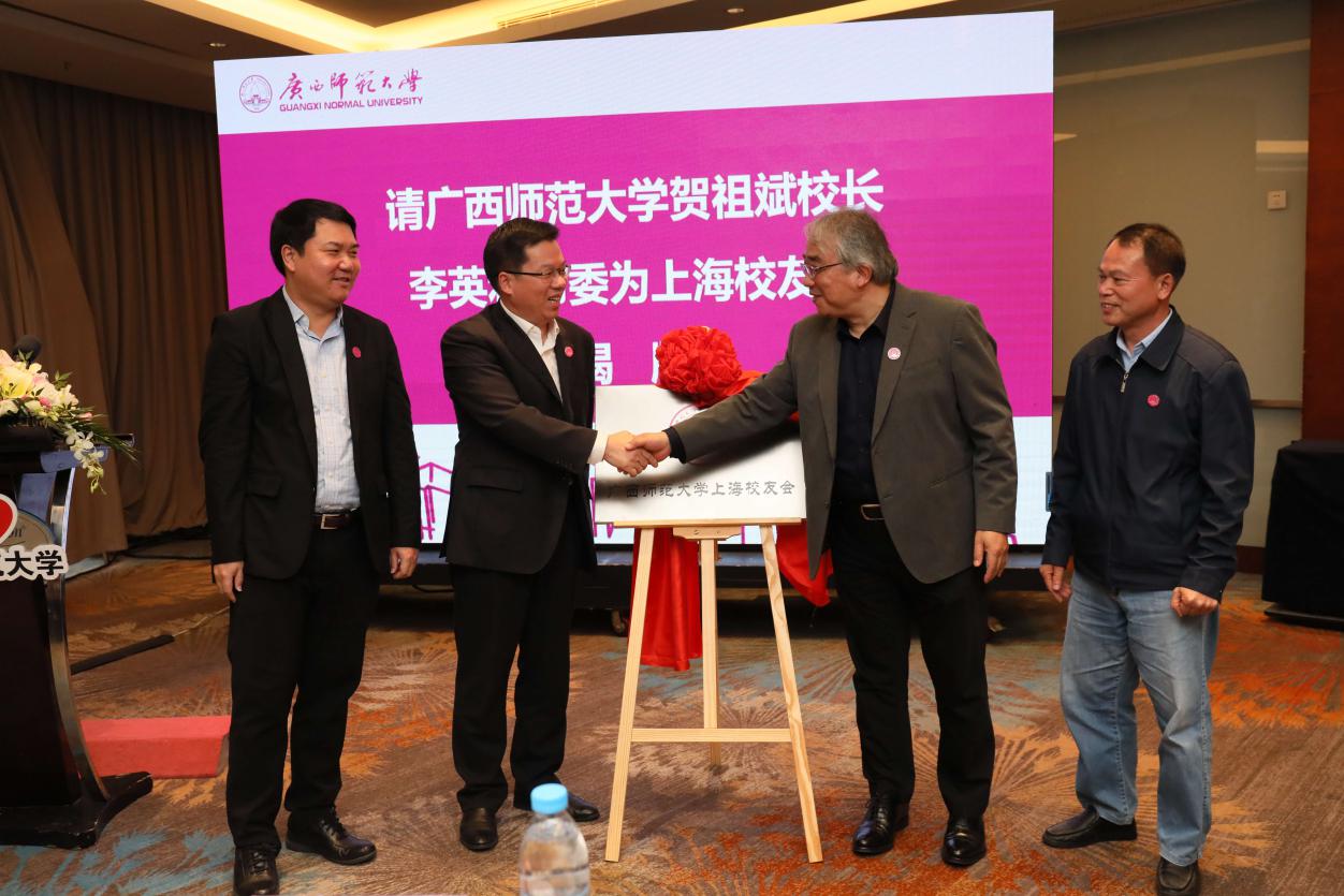 会上,李英利宣读了《关于同意成立广西师范大学上海校友会的批复》;审议通过了上海校友会章程和组织机构成员名单;贺祖斌、李英利为组织机构成员颁发了聘书,为上海校友会揭牌、授予会旗。