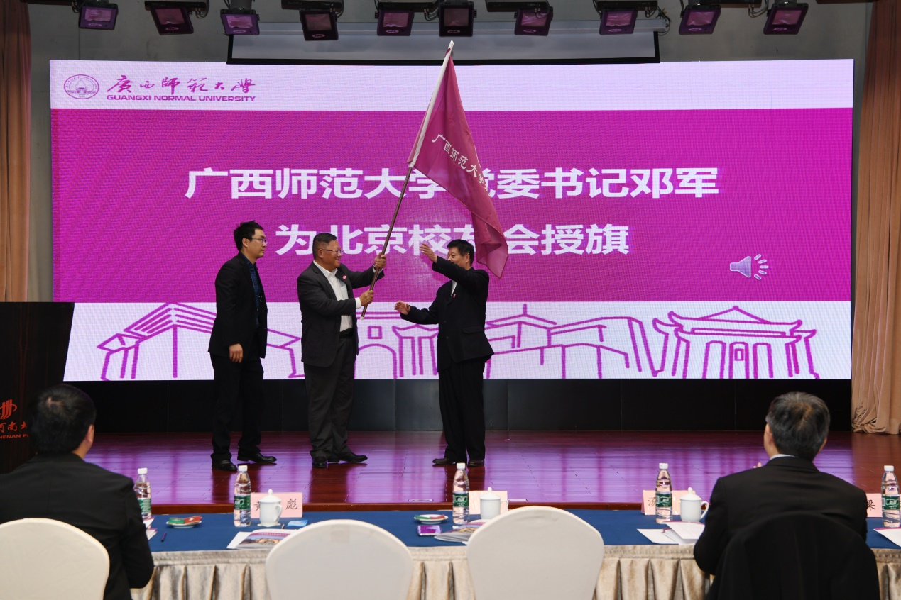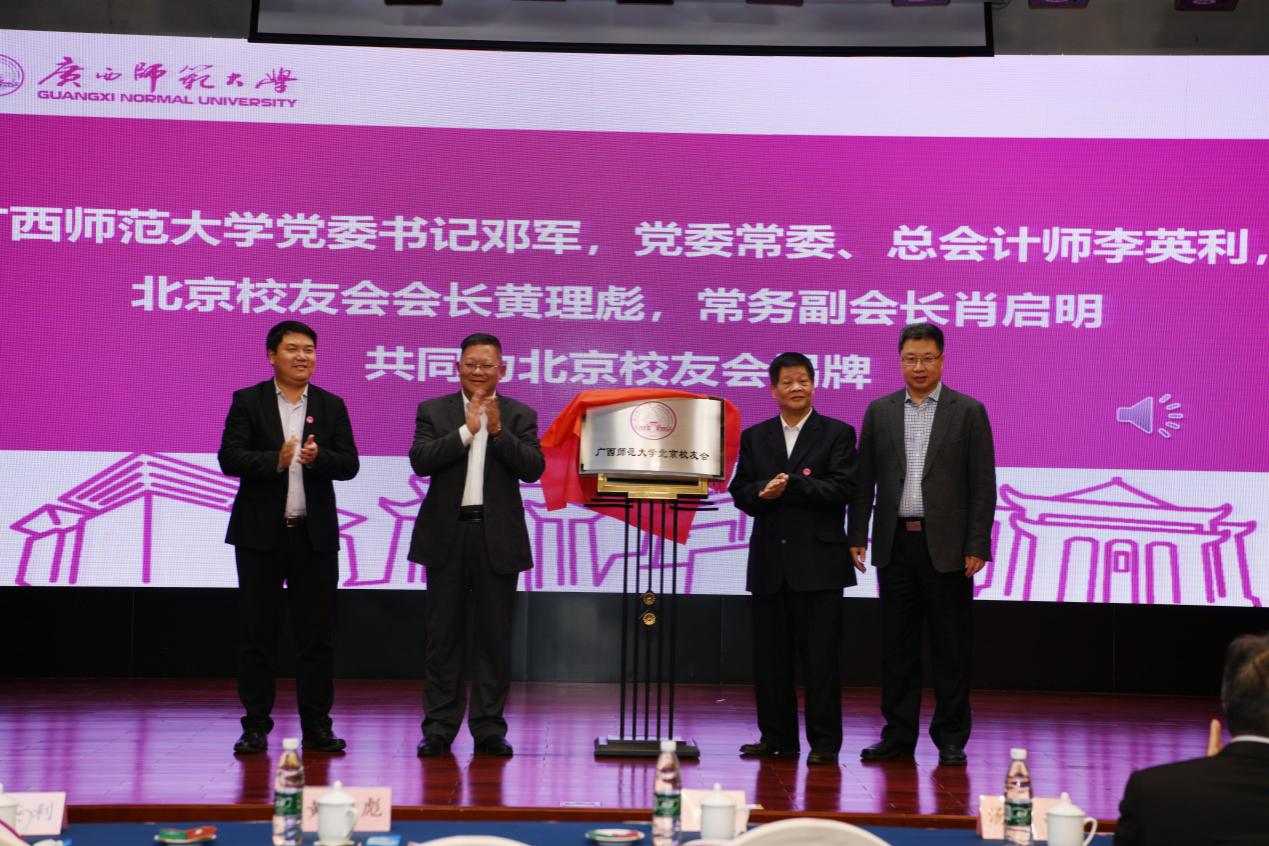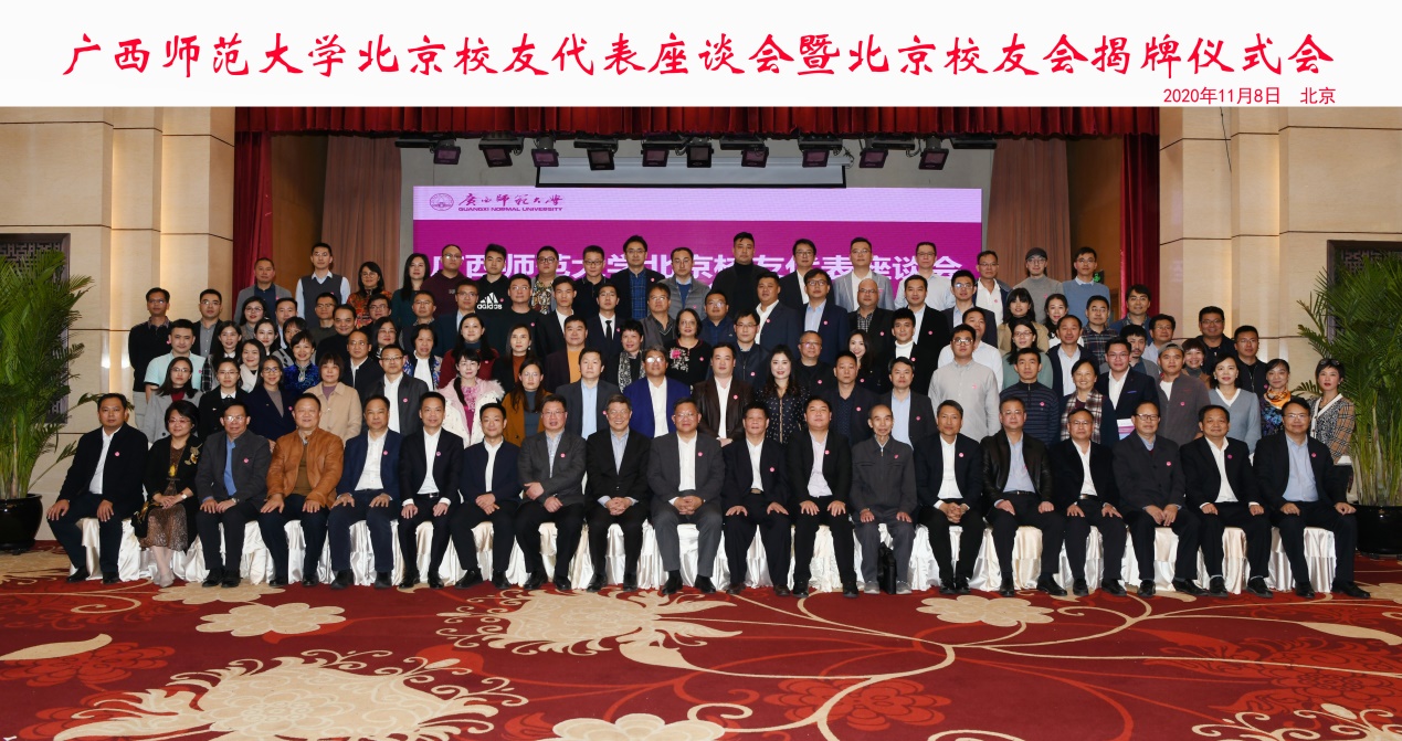 11月8日,广西师范大学北京校友代表座谈会暨北京校友会揭牌仪式在京举行。校党委书记、校友会名誉会长邓军,校党委常委、总会计师、校友会常务副会长李英利,校党委常委、组织部部长林国庆,校党委常委、统战部部长黄海波出席会议,校党委办公室/督办办公室、校友工作办公室/教育发展基金会管理办公室、国际交流处/国际文化教育学院相关同志和我校北京校友代表、各地校友代表130余人参加了会议,共同见证北京校友会揭牌。