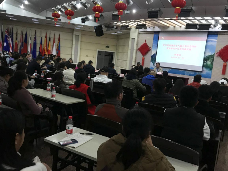 11月23日晚上,校党委常委、副校长林春逸为后勤保障处/后勤服务集团、基建处全体党员上专题党课,带领学习贯彻落实党的十九届五中全会精神,会议由后勤保障处/后勤服务集团党委负责人主持。