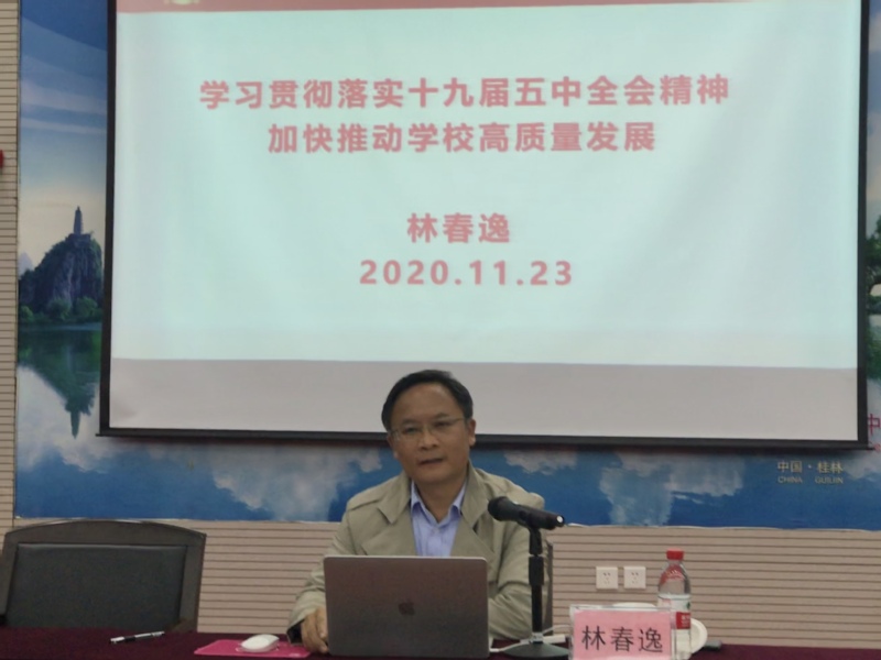 林春逸副校长为后勤保障处/后勤服务集团、基建处作十九届五中全会专题辅导报告