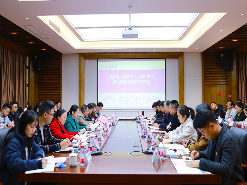 11月24日下午,广西高校学生会(研究生会)深化改革评估工作组第六小组一行8人到我校开展学生会(研究生会)深化改革评估验收工作。校党委副书记旷永青,校团委全体干部,部分学院(部)团委负责人、学生会、研究生会和普通学生代表参加评估工作会。