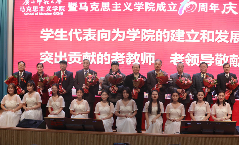 会上,学生代表为学院的建立和发展作出贡献的老教师、老领导敬献了鲜花。