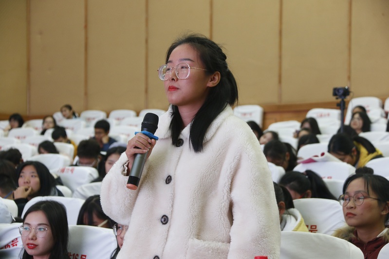 报告会上,三位主讲人依次向在场同学分享了各自的学习经验。焦继文以“念念不忘,必有回响”为主题,分享了他在学习、科研与生活上的经验。他提到,在专业学习中,要投入充足的时间,做到课前预习,上课集中精力,课后及时复习,温故而知新,勤学好问,多做习题。在英语学习中,做到多做四六级真题,积极参加竞赛,及时找出自己的不足并弥补。他在给同学们的寄语中谈到,做人要知足,做事要知不足,做学问要不知足,做人、做事、做学问,三者结合才是硬道理。张瑶与同学们分享了考研北师大的经历,并分享了自己的学习心得:第一,借鉴榜样的经历,从中获得启发;第二,多与老师沟通,交流想法;第三,跳出舒适圈,坚持学习,多尝试,走出寝室,多去图书馆;第四,结合专业多思考,培养善于思考的能力。袁安邦以“学习三问”为主题,向同学们提出宝贵建议:要拥有一个学习目标,要做好有意义的四年大学生涯规划,要成为一个会交流的人,要永远保持年轻向上的心态。在观众问答环节中,同学们纷纷踊跃向榜样提问求教,三位主讲人也逐一耐心地回答每一个问题。
