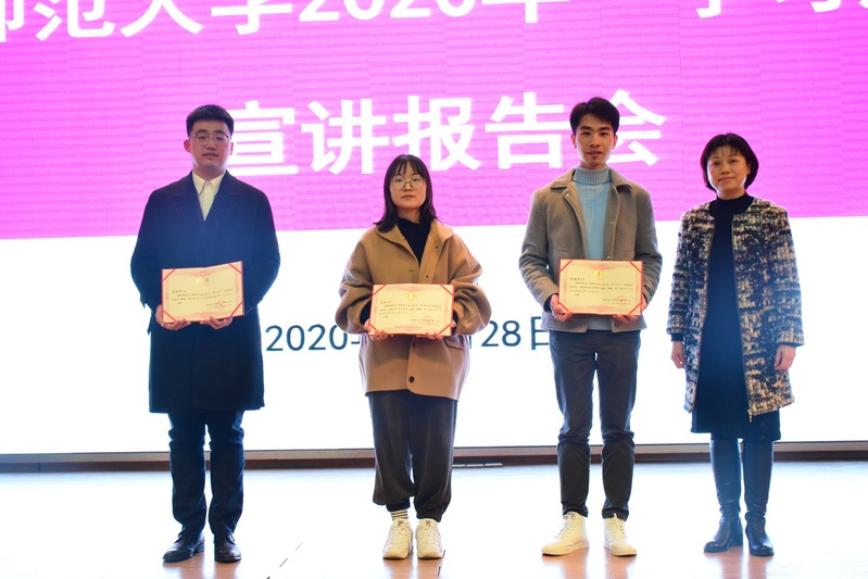 报告会的最后,学工部(处)相关负责人为三位主讲人颁发“2020年‘学习达人’宣讲报告团成员”聘书。