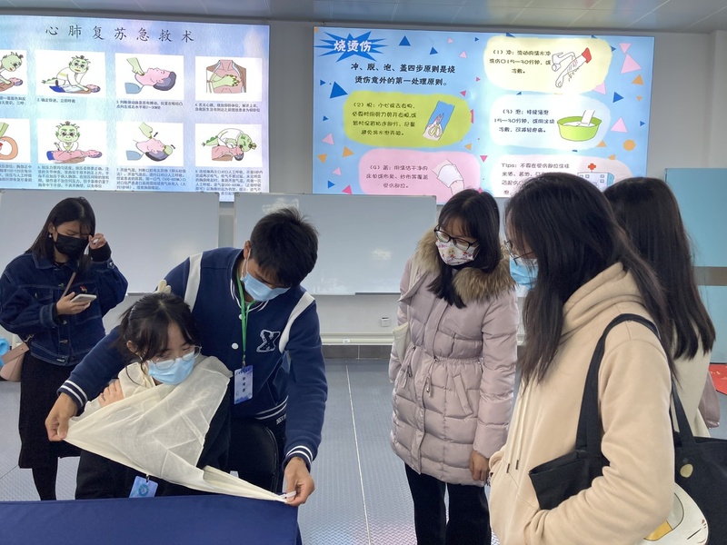 在桂林医学院基础医学院党委领导的安排下,师生们在本科教学实验室观摩了医学类学生的实验课教学,在该院医学人文急救社志愿者的讲解指导下参观了生命急救馆,普及了日常急救小知识。在生命科学馆,通过一排排明亮的标本柜,一幅幅精美的科学挂图,增强了对自身人体构造的了解。基础医学院老师同学们一一与学部师生亲切交流,做细致的讲解,解答各种疑问。