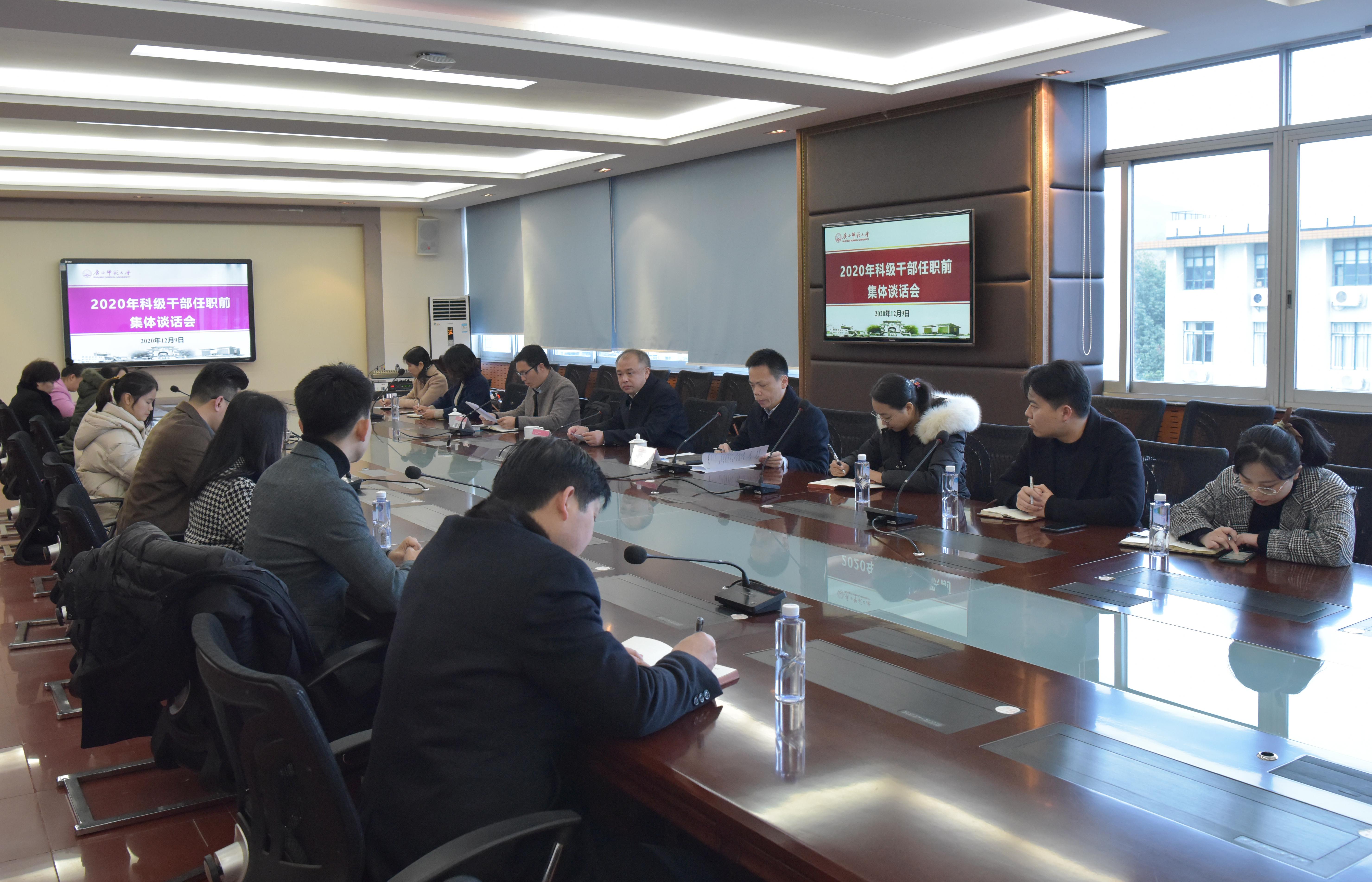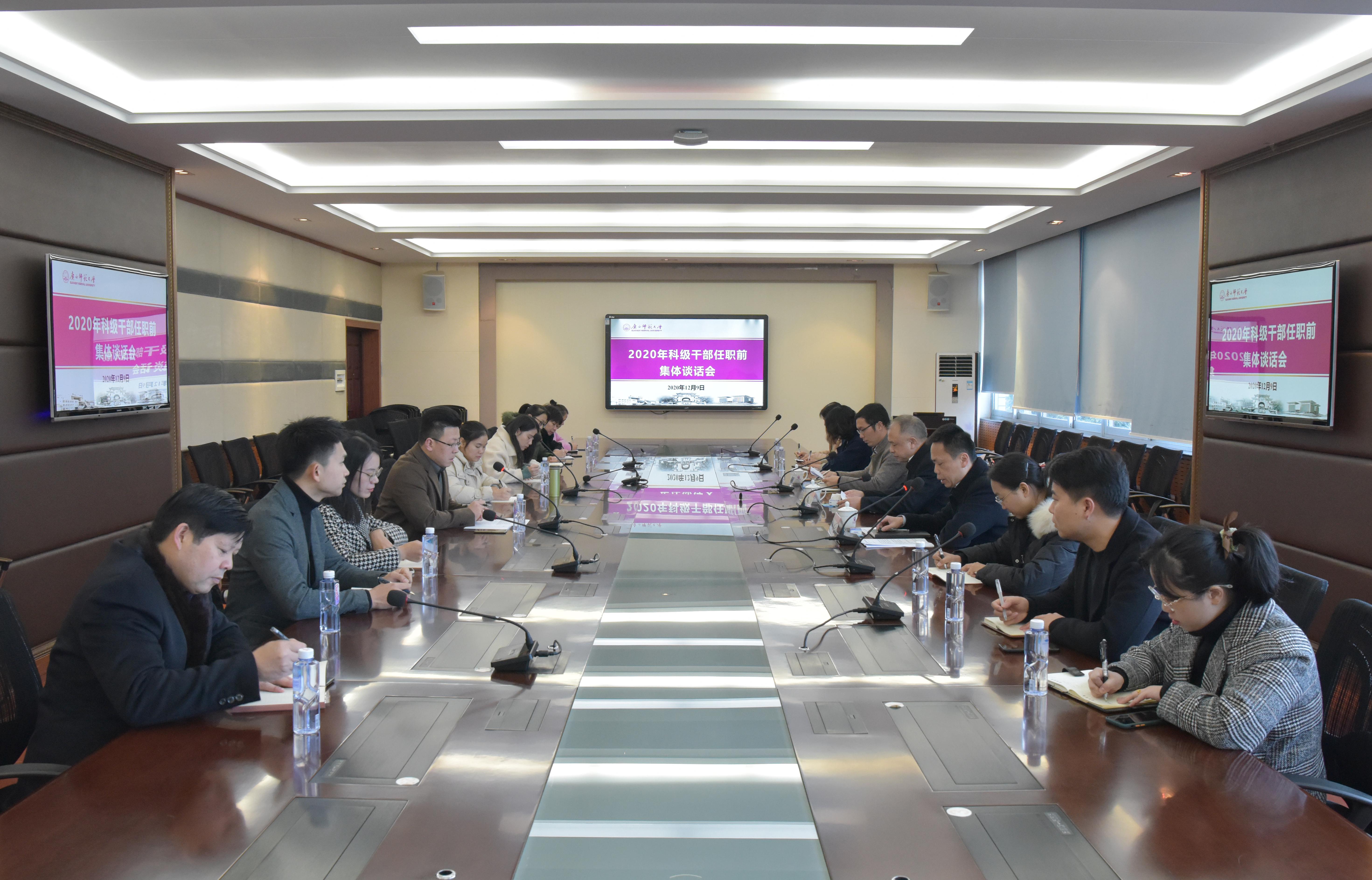12月9日上午,我校在育才校区田家炳教育书院501会议室举行科级干部任前集体谈话会,校党委副书记赵铁出席会议并做了任前谈话,勉励新提任的科级干部要严字当头、干字为先,在新的岗位上展现新作为、做出新业绩,努力做一名师生满意的“新时代答卷人”。