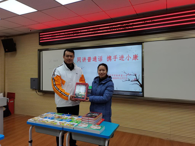“同讲普通话,携手进小康”2020年全国第23个推普周活动正如火如荼开展。为加强通用语言文字教育,大力提升普通话普及率,服务区域发展需要,漓江学院语言文字工作委员会一行七人7日前往广西唯一回族乡小学——桂林市草坪回族希望小学开展推普活动并赠书。