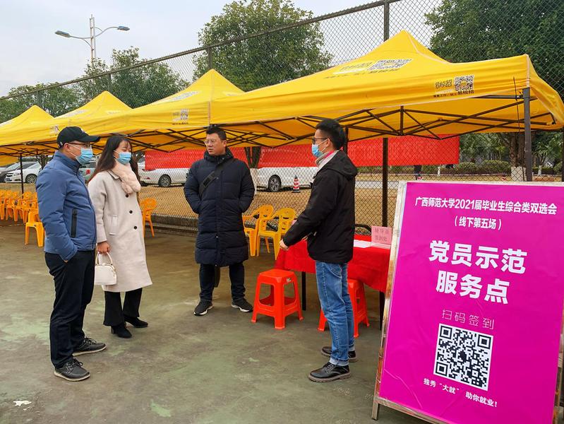 为深入贯彻落实“六稳”“六保”政策,为用人单位和毕业生搭建畅通的交流平台,助力用人单位招才引智,确保2021届毕业生顺利就业,12月18日,我校2021届毕业生综合类双选会(线下第五场)在雁山校区李园前篮球场顺利举办。学工部(处)主要负责人到场与学生进行亲切交流,并与用人单位沟通互动,推荐我校优秀人才。学工部(处)相关负责人、各学院(部)分管学生工作副书记、毕业班辅导员均到现场指导学生,大力向用人单位推荐我校优秀毕业生。