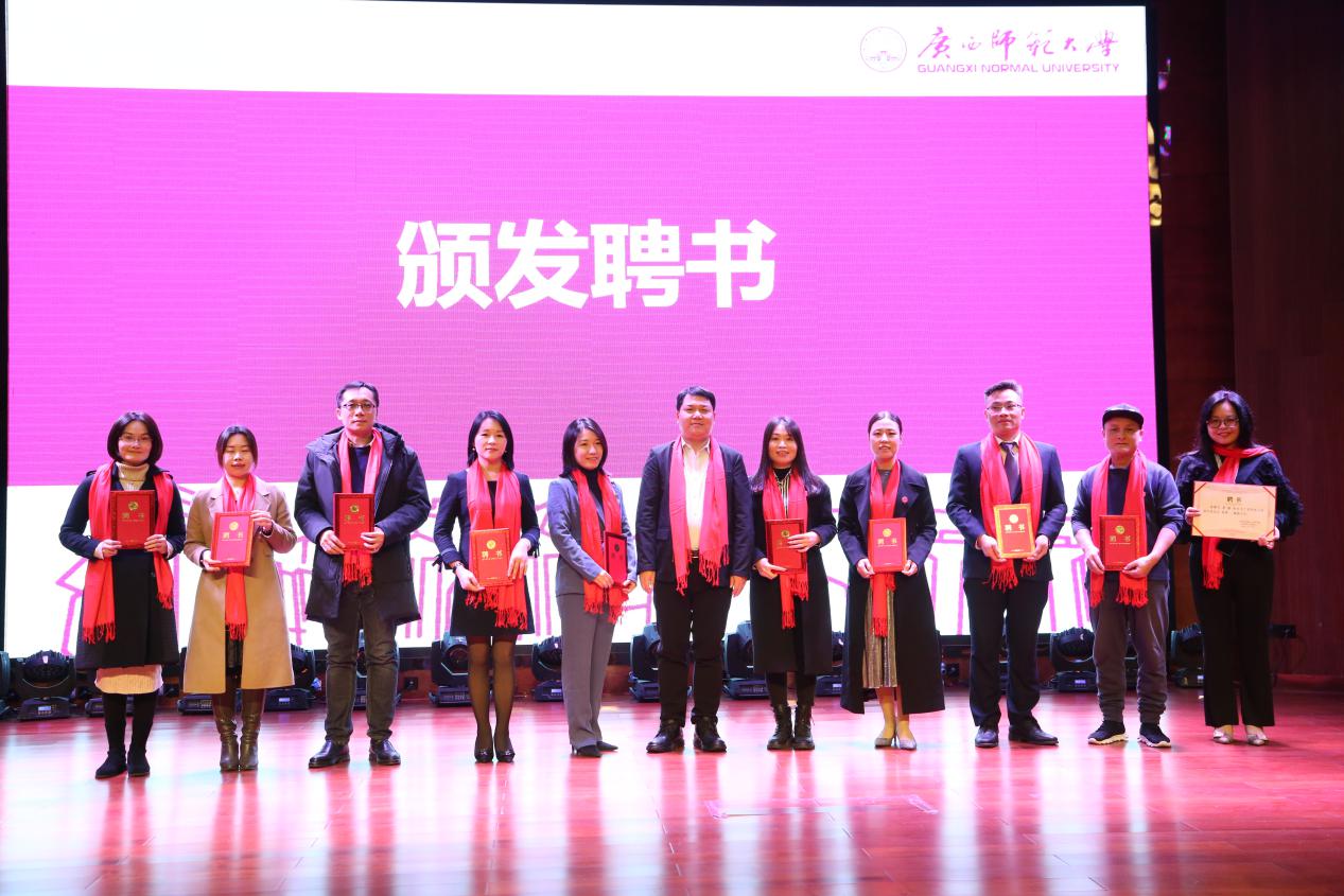 会议审议通过了深圳校友会组织机构成员调整名单,中文系1981级刘培桂校友当选会长。贺祖斌校长、李英利总会计师和深圳校友会校友代表刘培桂、盘美昌、韦骁勇、刘志超共同为广西师范大学深圳校友会揭牌;贺祖斌为深圳校友会授旗;贺祖斌校长、李英利总会计师为组织机构成员颁发了聘书。