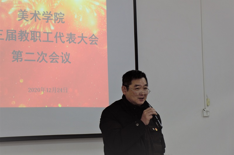 12月24日,美术学院教职工代表齐聚纯道楼会3A-208议室,举行学院第三届教职工第一次代表大会。